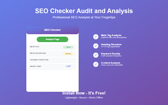 Auditoria e Análise de SEO Checker por AIO.com.aié um aplicativo gratuito para Chrome, pertencente à categoria 'Complementos & Ferramentas'.